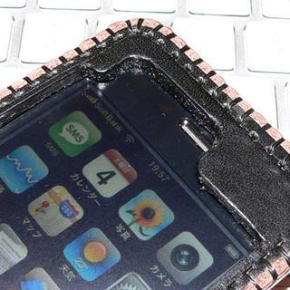 ということで、とりあえずセンサーがありそうな部分の革を切り取ることにしました.以前のシンプルな見た目から考えると、非常に不細工な出来映えになってしまったのですが、電話機としての決定的な機能欠落対策ですので、しょうがありません.不本意ながら、こういう形で使うことにしました.あとになって気がついたのですが、iPhone用のケースとして販売されているものの中には、センサーがあるであろう部分に、あからさまに穴が開けてあるようなデザインのものがいくつかあります.やっぱり必要なんですよね.無視しちゃダメです.見た目は大きく変わってしまいましたが、当面はこのまま使うこととします.