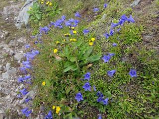 すぐに歩道の脇に高山植物.名前はわかりません.高山植物って、ちっこい花が多いんですね.