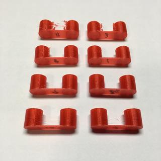 右側は先ほどの写真と同じもので、デフォルトの移動速度100mm/sです.左側は50mm/sに変更したものです.引き戻し量は、上から0.5mm、1.0mm、1.5mm、2.0mmです.移動速度半分ですからノズルが空中にいる時間が2倍になっているので、状態が2倍ひどくなるかと思ったんですがそうでも無くて、移動速度を半分にしても引き戻し量は1.5mmで十分で、それ以上多くしても変化は無いです.